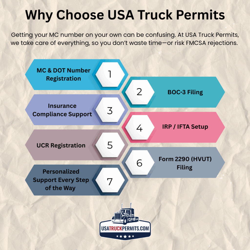 Securing an MC number and meeting compliance requirements can be complex. With USA Truck Permits, you get full-service support from experienced professionals who understand the trucking industry and FMCSA regulations.